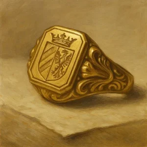 Золото идеально подходило для этой цели. Во-первых, оно устойчиво к коррозии, что делало печать долговечной. Во-вторых, благородный металл подчёркивал статус владельца — не каждый мог позволить себе такое кольцо. Наконец, его пластичность облегчала гравировку, особенно если перстень украшался сложной монограммой или семейным гербом.