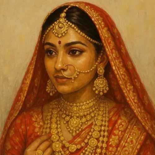 Для многих индийцев золото — символ процветания, удачи и защиты. В день свадьбы невеста надевает десятки украшений: ожерелья, серьги, браслеты, кольца и даже украшения для лба и ступней — всё из жёлтого металла. Чем больше золота, тем «сильнее» считается её защита от дурного глаза и неудач в браке.